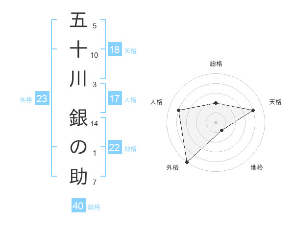 五十川 銀の助さんを姓名の画数から五運を鑑定