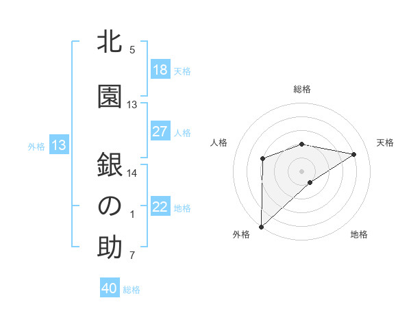 北園 銀の助さんを姓名の画数から五運を鑑定