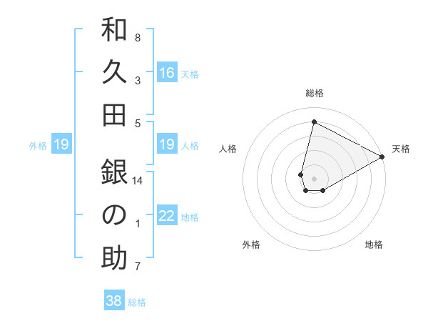 和久田 銀の助さんを姓名の画数から五運を鑑定