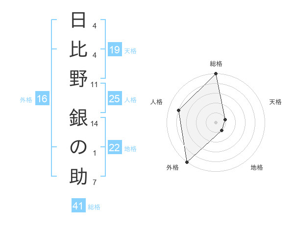 日比野 銀の助さんを姓名の画数から五運を鑑定