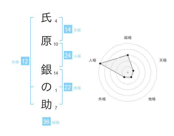 氏原 銀の助さんを姓名の画数から五運を鑑定