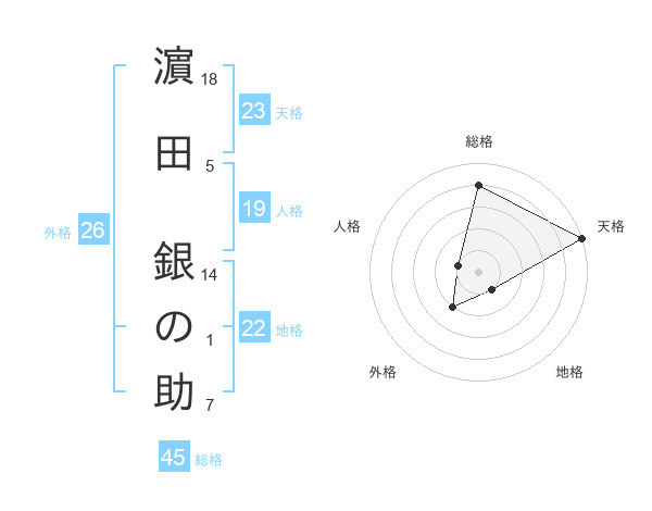 濵田 銀の助さんを姓名の画数から五運を鑑定