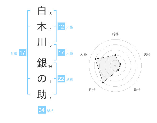 白木川 銀の助さんを姓名の画数から五運を鑑定
