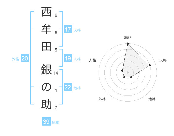 西牟田 銀の助さんを姓名の画数から五運を鑑定