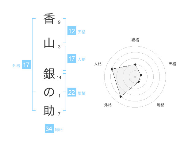 香山 銀の助さんを姓名の画数から五運を鑑定