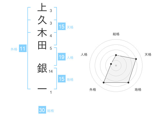 上久木田 銀一さんの天格は15画の4点!