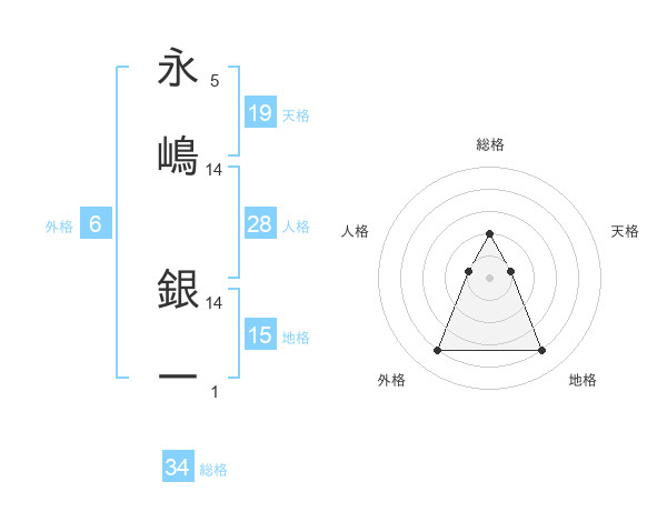 永嶋 銀一さんを姓名の画数から五運を鑑定