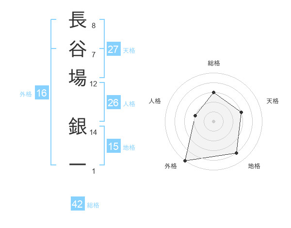 長谷場 銀一さんを姓名の画数から五運を鑑定