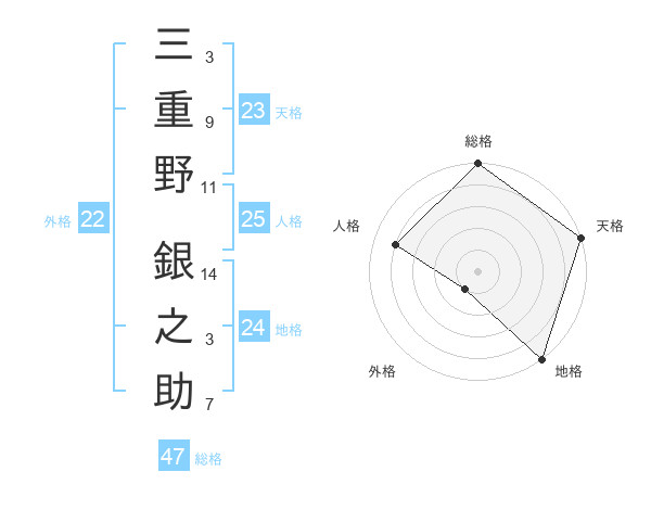 三重野 銀之助さんの総格は47画の5点!