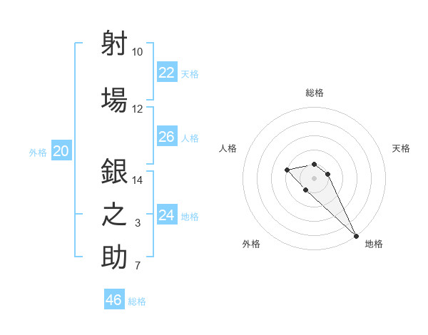 射場 銀之助さんの総格は46画の1点!