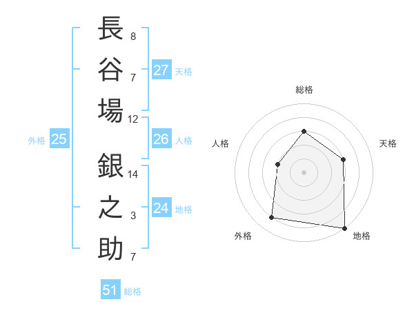 長谷場 銀之助さんを姓名の画数から五運を鑑定