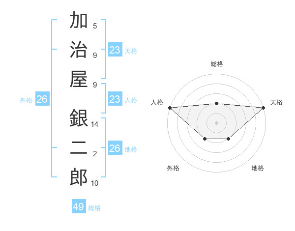 加治屋 銀二郎さんを姓名の画数から五運を鑑定