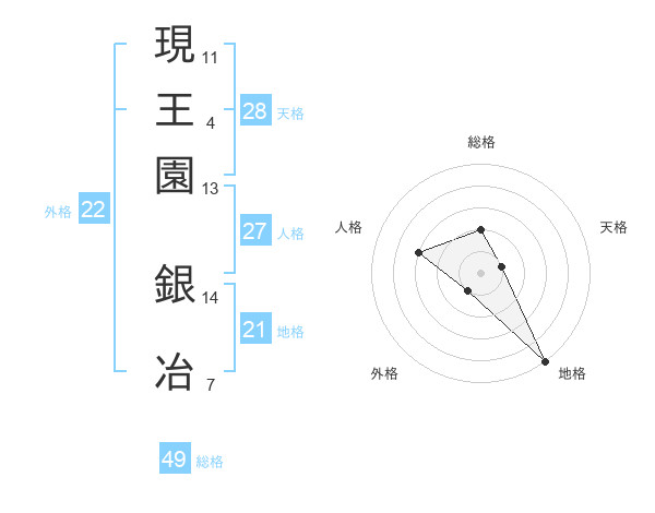 現王園 銀冶さんを姓名の画数から五運を鑑定