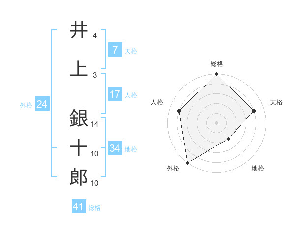 井上 銀十郞さんの外格は24画の5点!