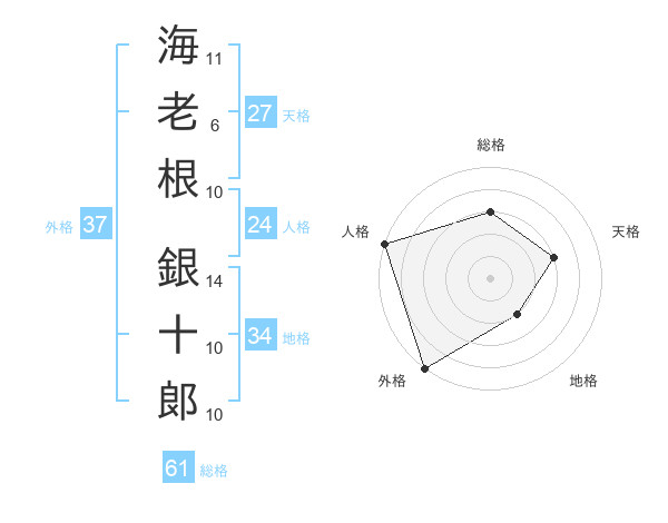 海老根 銀十郞さんを姓名の画数から五運を鑑定