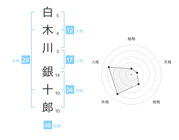 白木川 銀十郞さんを姓名の画数から五運を鑑定