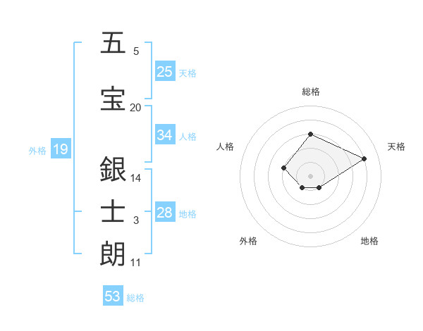 五宝 銀士朗さんの総格は53画の3点!
