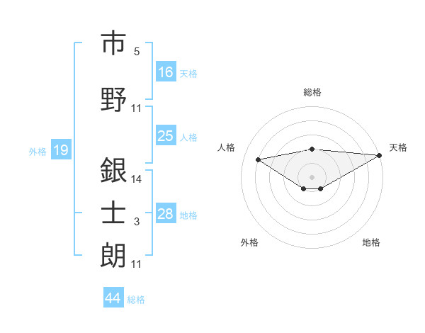 市野 銀士朗さんの総格は44画の2点!