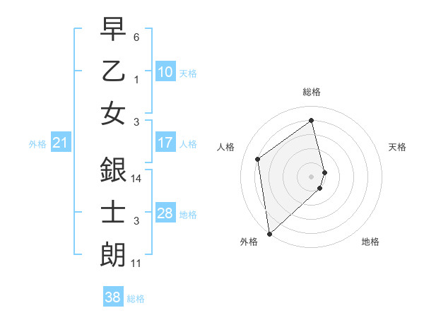 早乙女 銀士朗さんの総格は38画の4点!