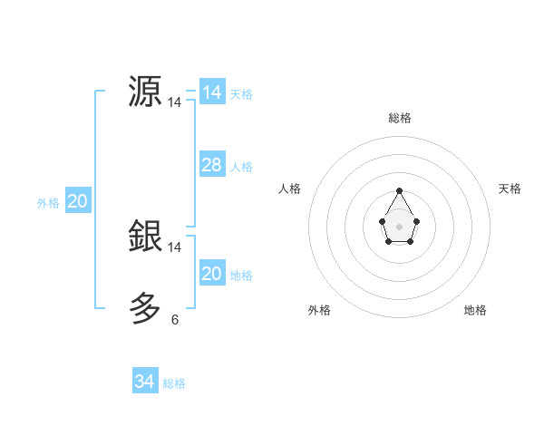 源 銀多さんの天格は14画の1点!