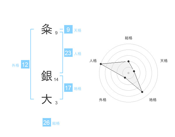 家系が持つ宿命的な運勢を表します。祖先から受け継いだ苗字ですので自分の力が及びません。家柄を象徴します。