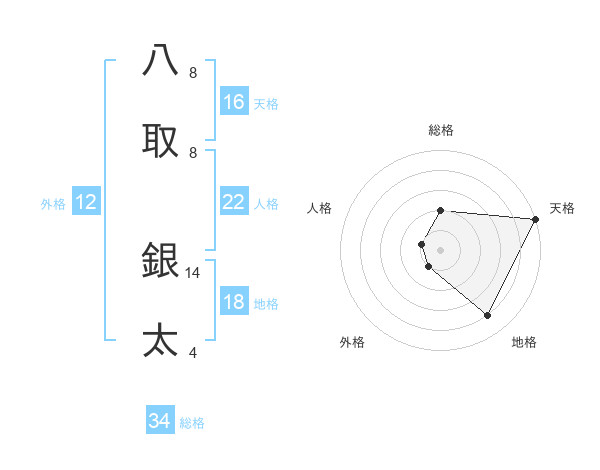 八取 銀太さんの天格は16画の5点!