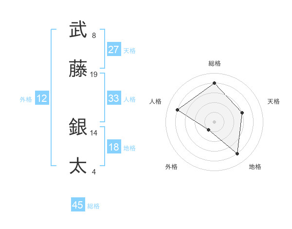 武藤 銀太さんの総格は45画の4点!