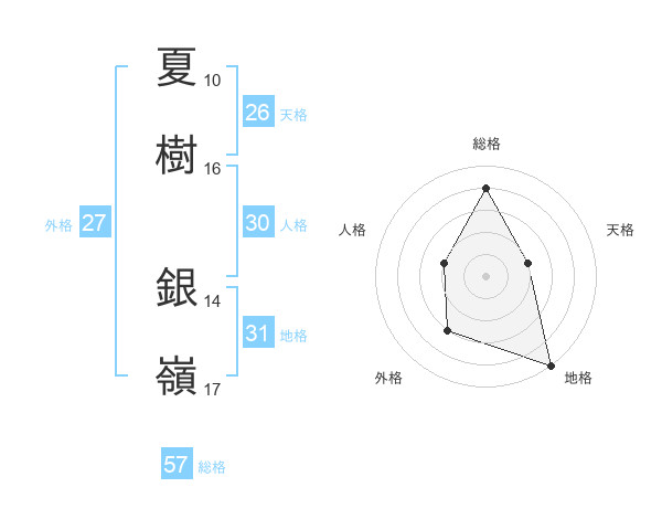 夏樹 銀嶺さんを姓名の画数から五運を鑑定