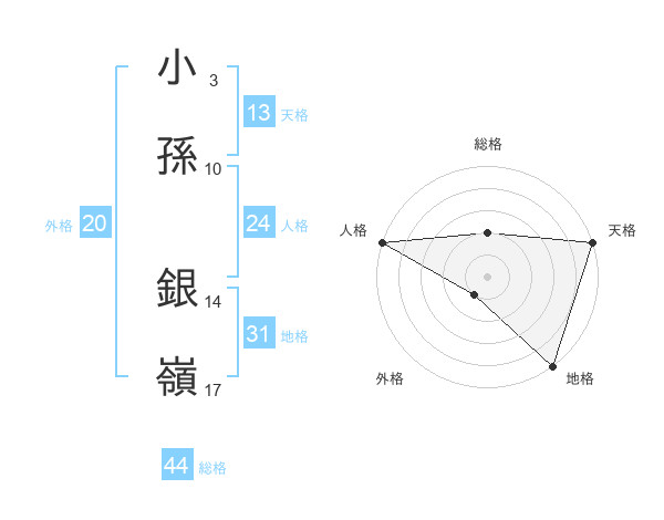 小孫 銀嶺さんの総格は44画の2点!