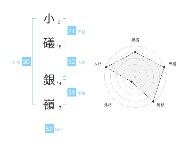 小礒 銀嶺さんを姓名の画数から五運を鑑定
