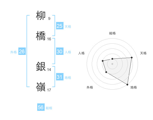 柳橋 銀嶺さんの地格は31画の5点!