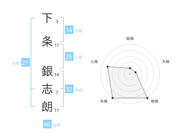 下条 銀志朗さんを姓名の画数から五運を鑑定