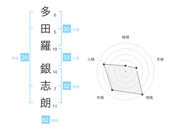 多田羅 銀志朗さんを姓名の画数から五運を鑑定