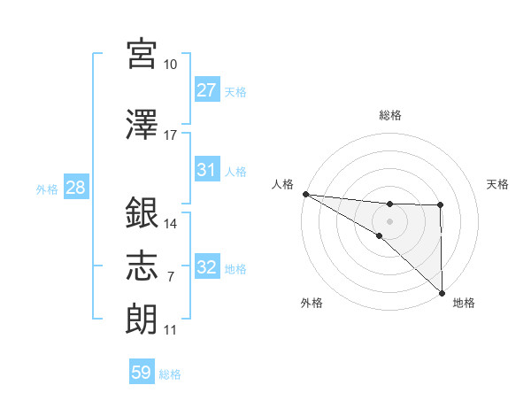 宮澤 銀志朗さんの総格は59画の1点!