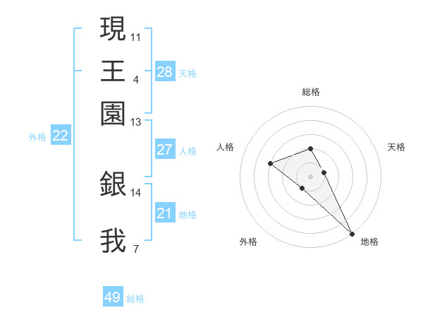 現王園 銀我さんを姓名の画数から五運を鑑定