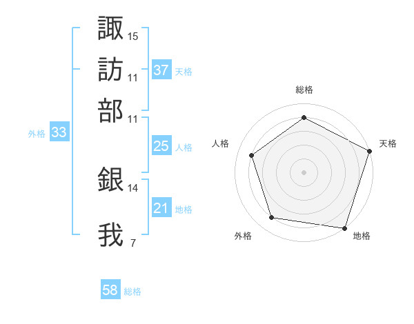 諏訪部 銀我さんの総格は58画の4点!