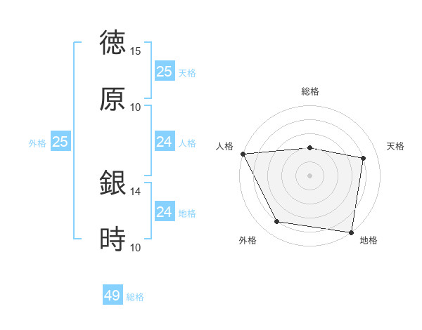 徳原 銀時さんの天格は25画の4点!