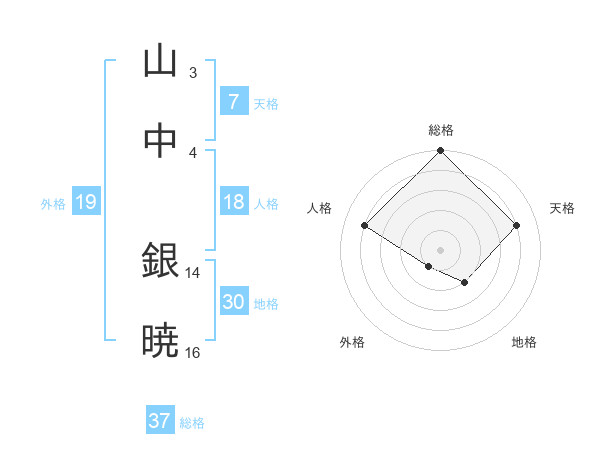 山中 銀暁さんを姓名の画数から五運を鑑定