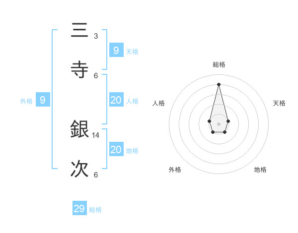 三寺 銀次さんを姓名の画数から五運を鑑定