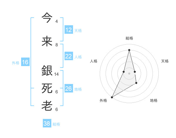 今来 銀死老さんを姓名の画数から五運を鑑定