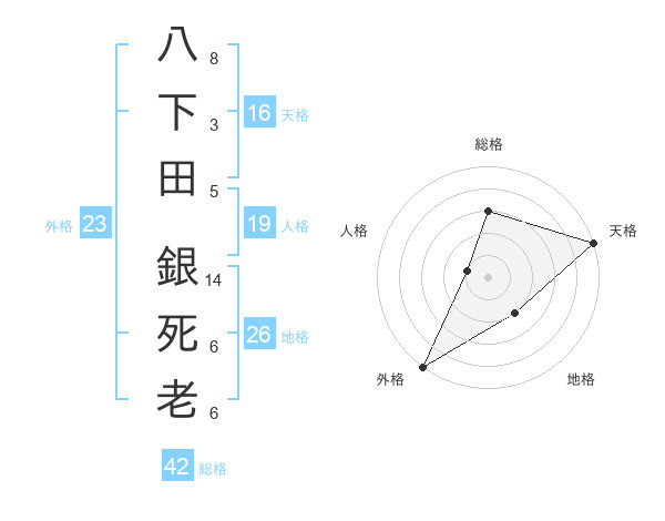 八下田 銀死老さんを姓名の画数から五運を鑑定