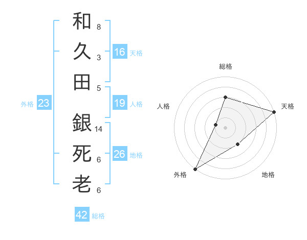 和久田 銀死老さんの外格は23画の5点!