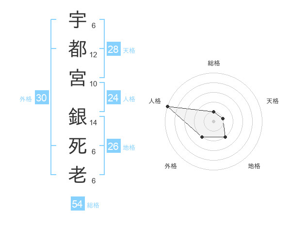 宇都宮 銀死老さんの総格は54画の1点!