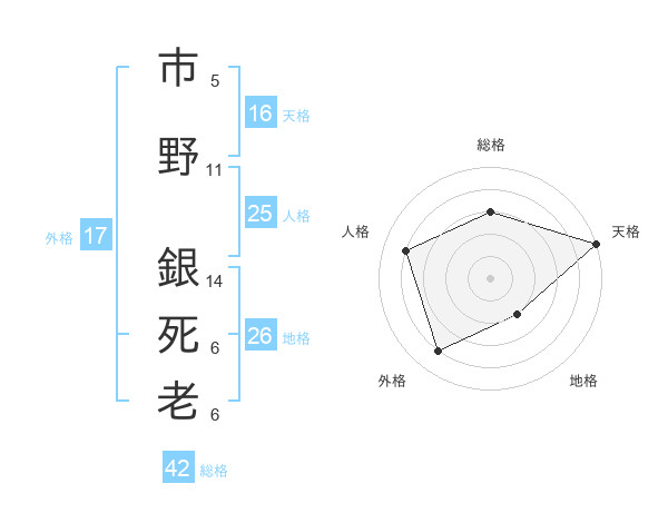 市野 銀死老さんを姓名の画数から五運を鑑定