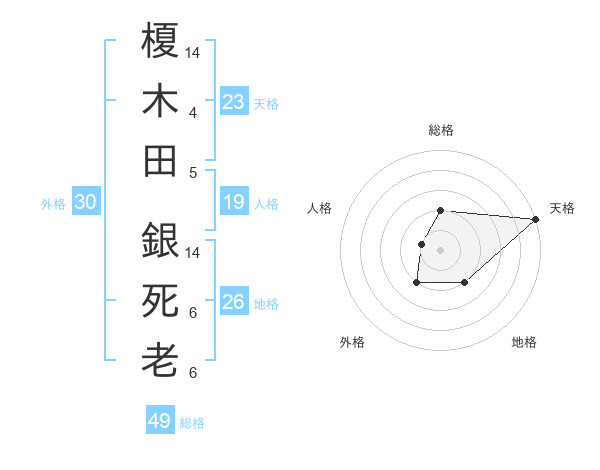 榎木田 銀死老さんの天格は23画の5点!