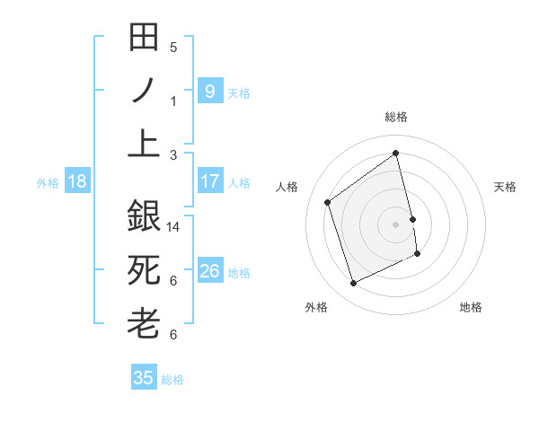 田ノ上 銀死老さんを姓名の画数から五運を鑑定