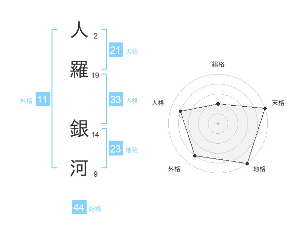 人羅 銀河さんを姓名の画数から五運を鑑定