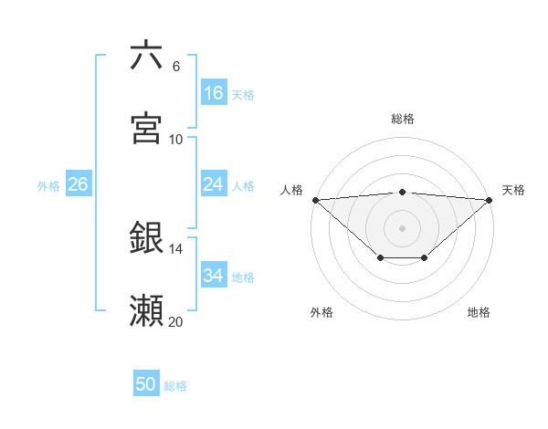 六宮 銀瀬さんを姓名の画数から五運を鑑定