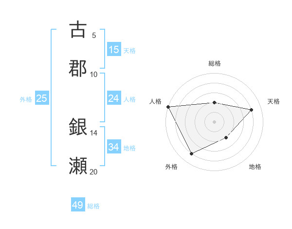 古郡 銀瀬さんを姓名の画数から五運を鑑定