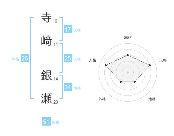 寺﨑 銀瀬さんの総格は51画の3点!